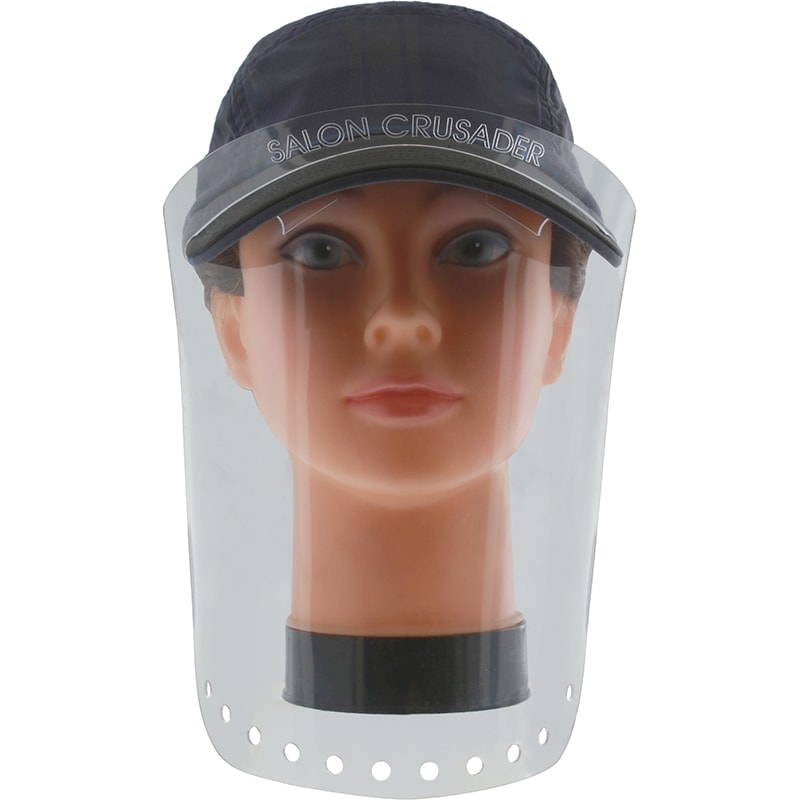Easily attaches to most cap visors. Designed to sit comfortably in front of the face without discomfort. Can be moved closer or further away from your face depending on your requirements and visor design. Can be worn with a face mask and glasses. Its clear material and curved design does not limit visibility. Ventilation slats located just under your cap’s visor prevent condensation build-up. Small holes below chin level help project your voice. 20.5cm high x 16cm wide.