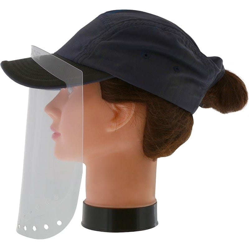 An effective addition to your personal safety. A 1mm UHI Plexiglass clear face shield (21x16cm) attachable to most peak or visor caps. In addition to face masks, provides an extra barrier between your face and the environment, effectively blocking contaminants from vulnerable areas on the face.