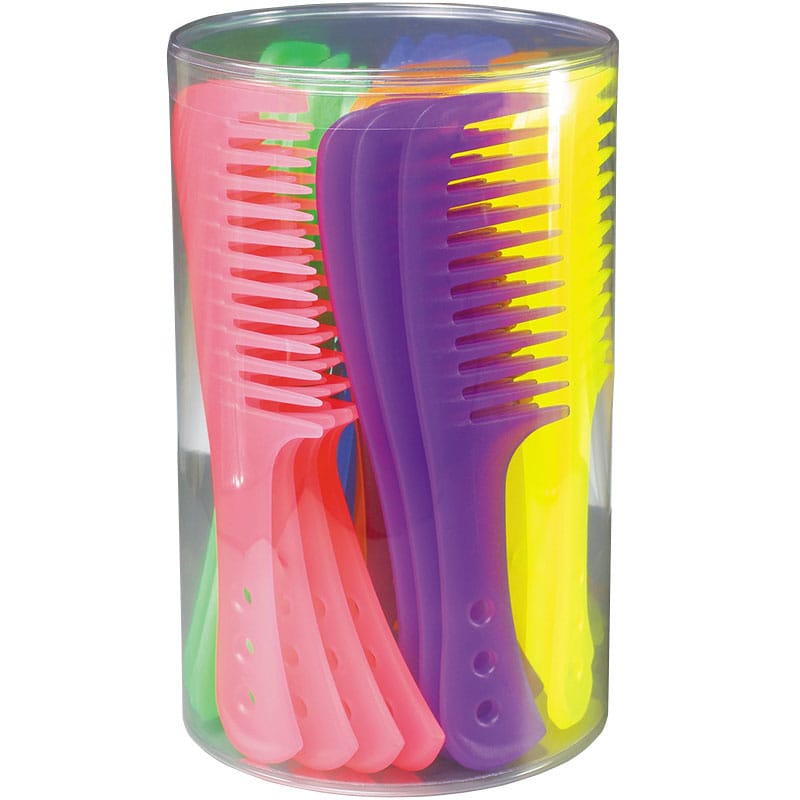 Assorted colours which makes this tub ideal for sharing. Never be without a pick-me-up styler. Larger teeth size to distribute product and promote more volume and bounce. Lightweight design for travel.