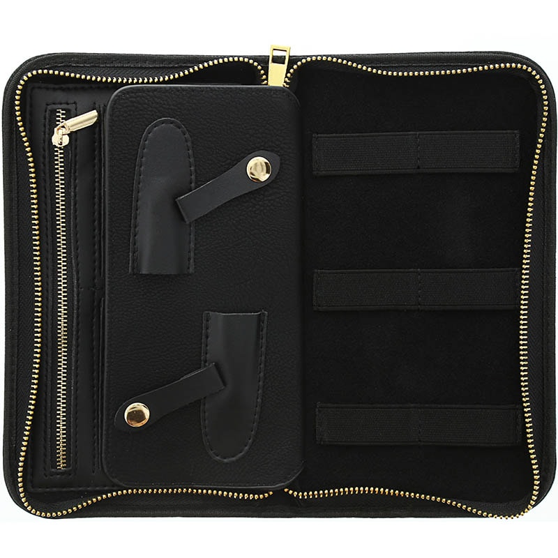 Zip bag (23x13cm) with sleeves to house and store scissors and other styling tools. Ideal for travel and keeping tools safe. Keep shears and styling tools organised and safe in one zip bag. Lightweight and ideal for travelling artists.