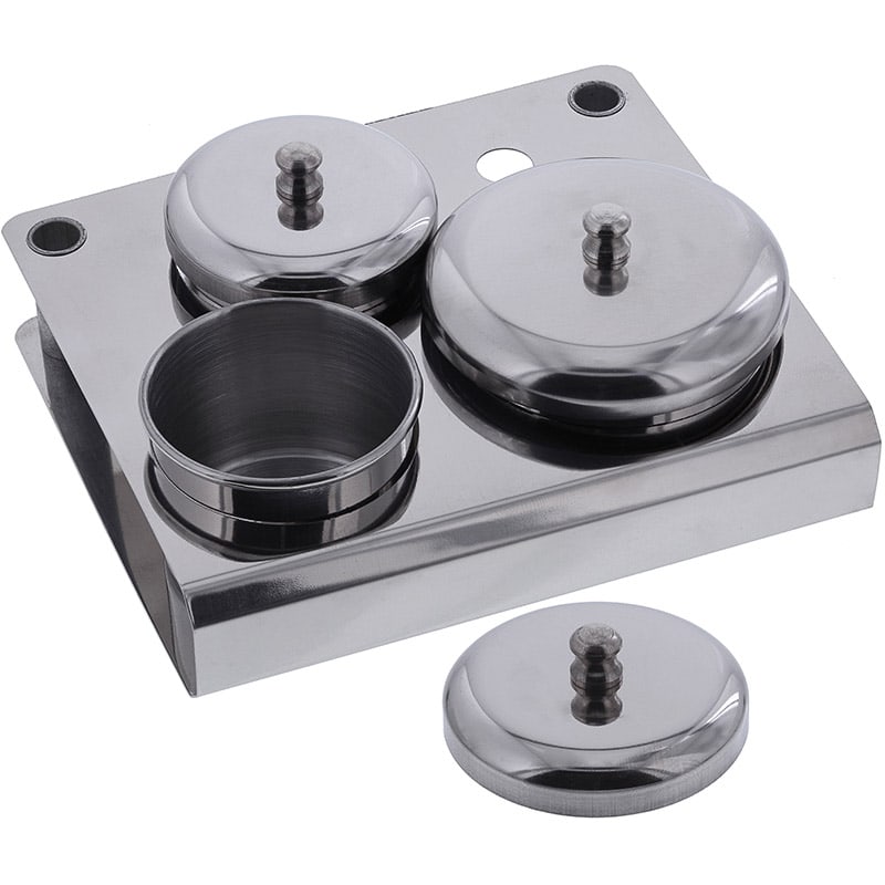 A 3 piece mini powder and liquid set. Store manicure liquids and powders to keep them organised and easily accessible. Features 3 containers and lids. Keeps powder and liquid safe in containers and lids. Durable metal design keeps contents safe and secure