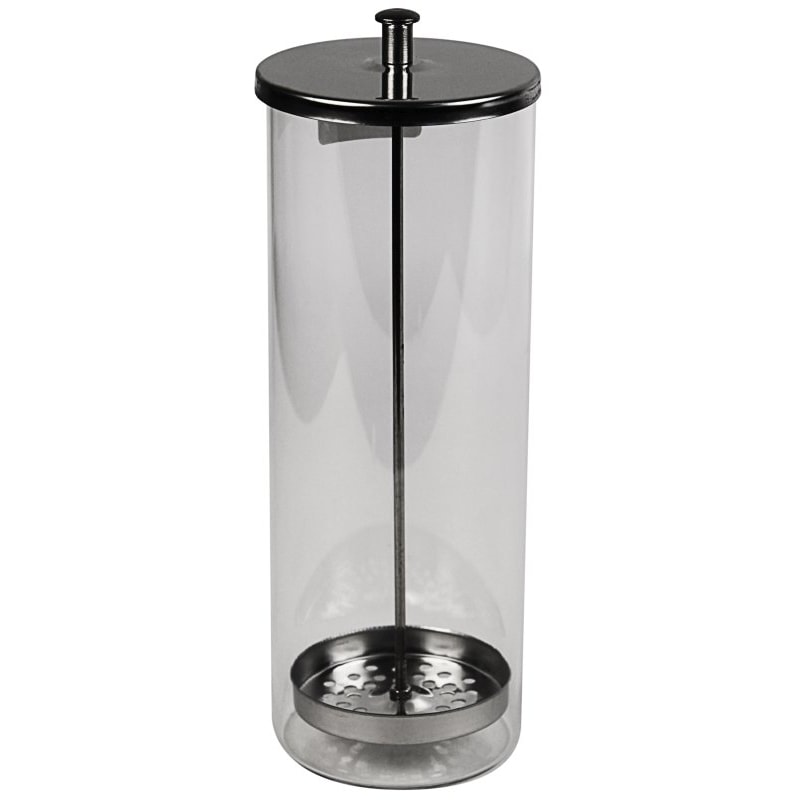 Features tray inside jar that can be lowered to submerge tools into solution, and upward to retrieve the clean tools. This is done without touching or spilling the sterilizing solution.