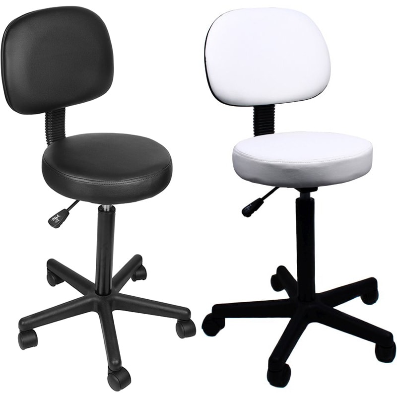 Vinyl upholstery with Gas-Lift and chromed base, on wheels. Height of stool can be easily adjusted.