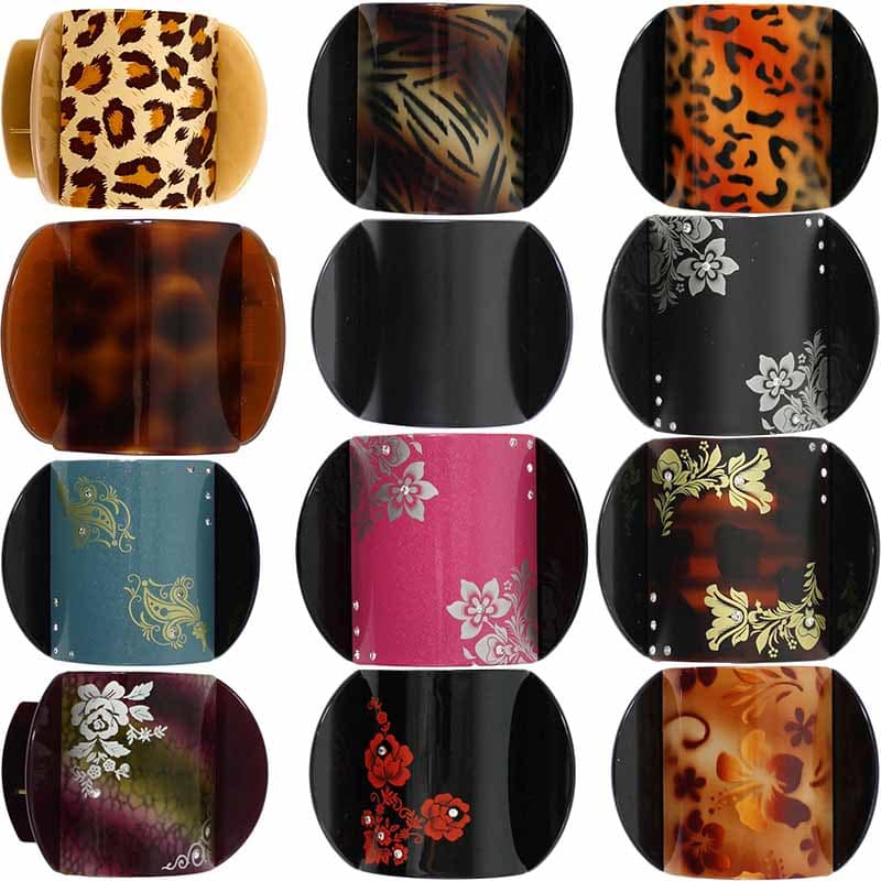 | Colour | Black, Black & Red, Black & Silver, Bronze Floral, Brown & Gold, Cheetah, Leopard, Pink & Silver, Purple Floral, Teal & Gold, Tiger, Tortoise Shell |