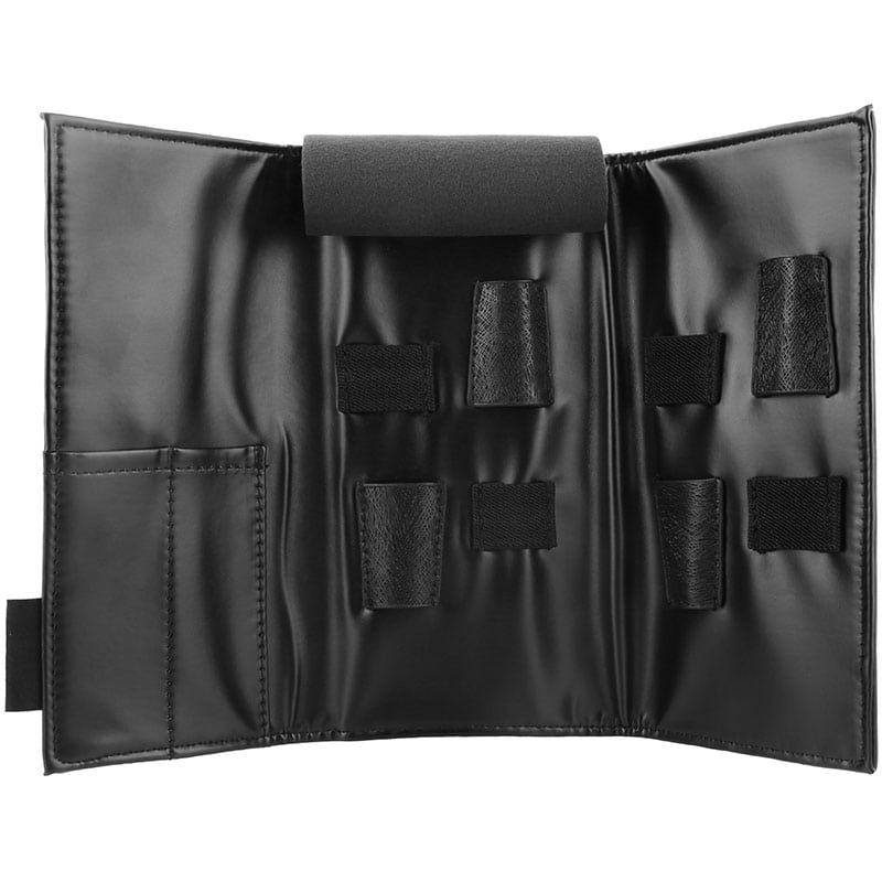 Three part tool bag with space to house four scissors. Features specialised housing compartments for scissors to keep them safe and secure during travel. Also includes two sleeves for accessories and tools.