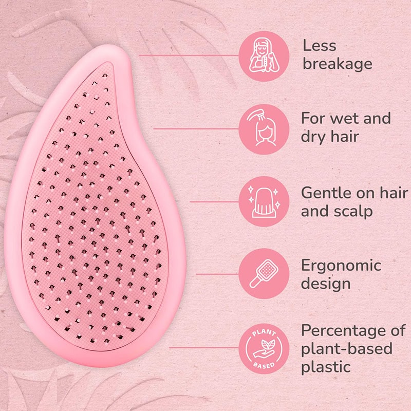 A sustainable detangling solution for ultimate comfort and control – in palm size! This palm detangler features a comfort grip to help detangle with better ease and control, a shape molded to fit in the palm and easily hold and use for long periods. This smaller footprint makes it an ideal on-the-go detangler. Works great for straight, curly, textured, thick and wavy hair. In keeping with the Go Green™ philosophy, the body of the brush is made of natural biodegradable plant starch to reduce the use of single use plastic. All brushes part of the Go Green™ range have packaging made of recyclable materials.